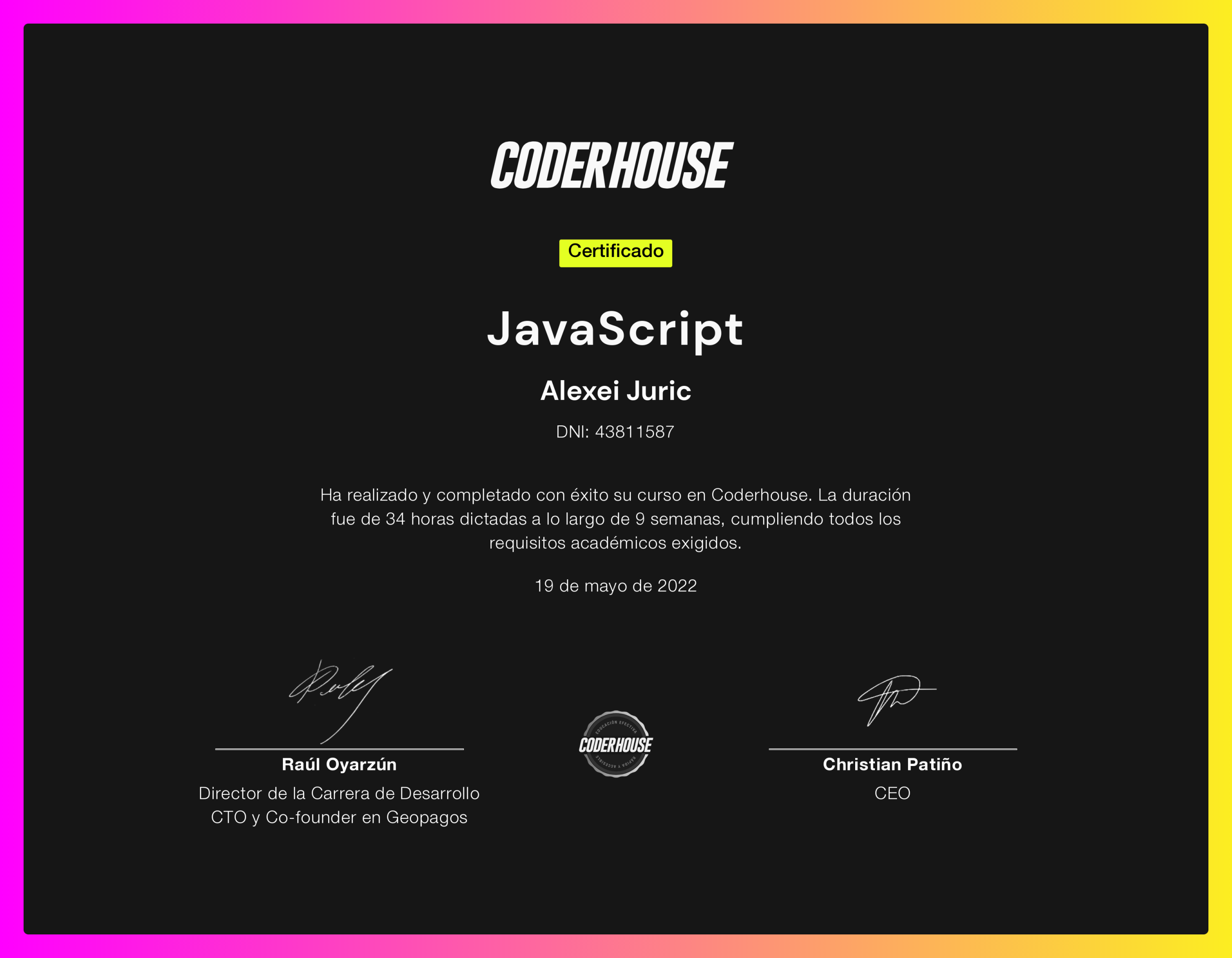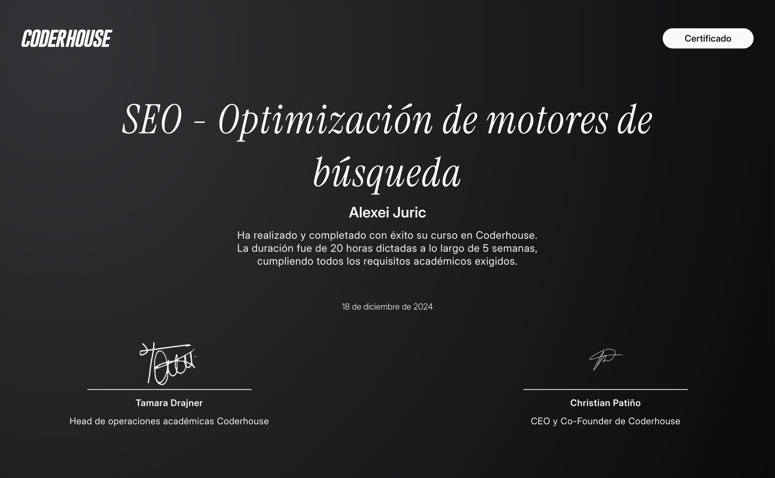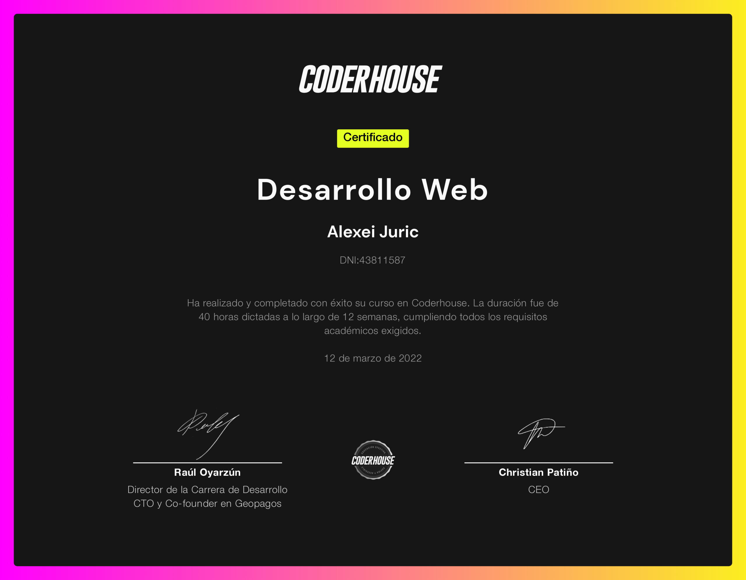 Formación universitaria en programación, arquitectura de software, algoritmos y gestión de proyectos (50% completado).