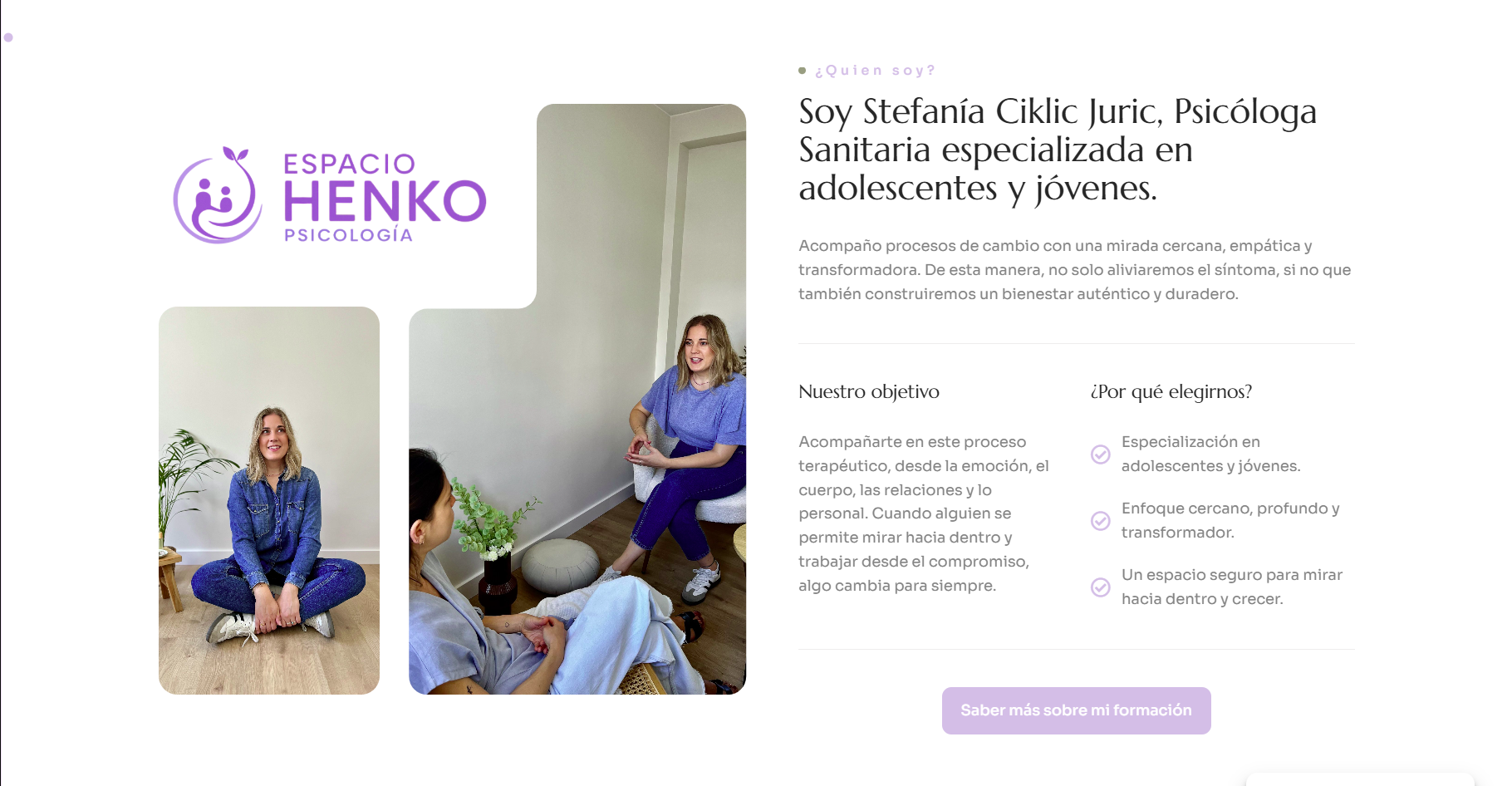 Un sitio acogedor y funcional que proyecta confianza y cercanía, facilitando la conexión entre terapeutas y pacientes potenciales.