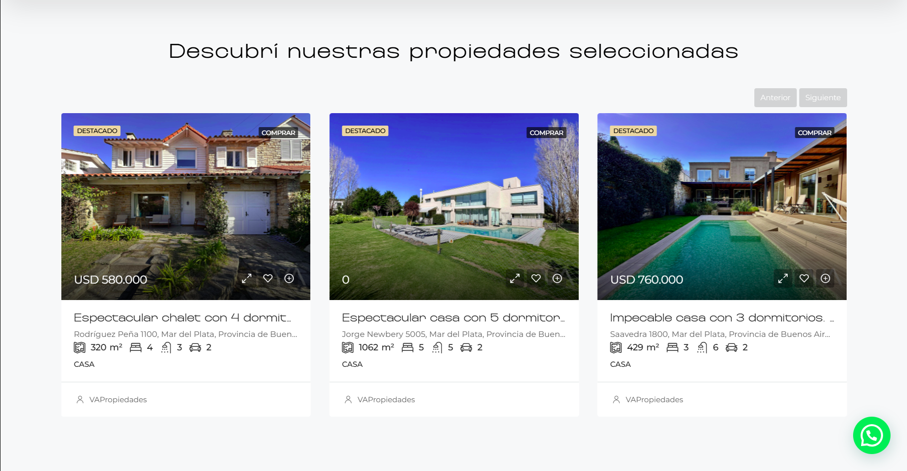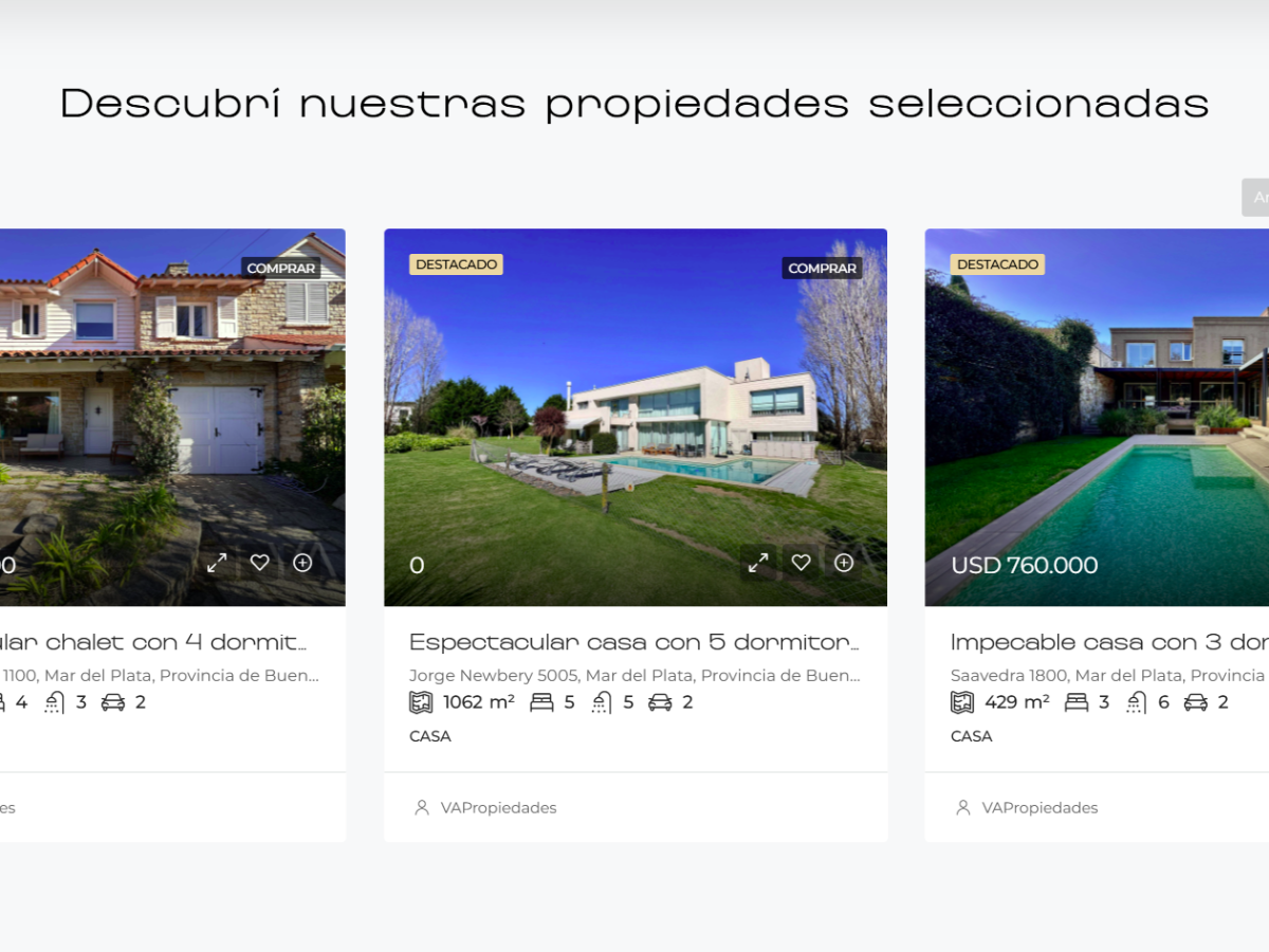 Una plataforma inmobiliaria moderna, autogestionable y analítica, que optimiza tanto la presentación de las propiedades al público como la toma de decisiones comerciales dentro del equipo de VA Propiedades.